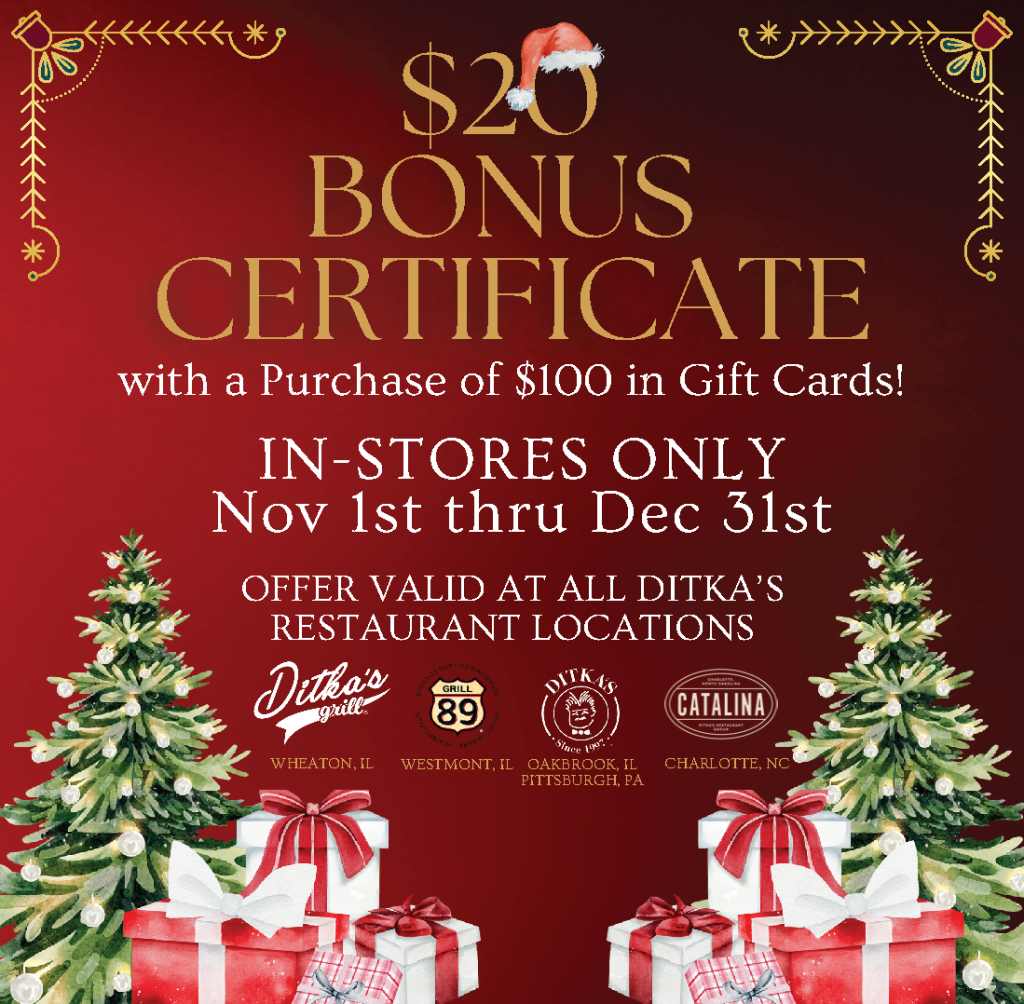 Join the Ditka’s Email and/or Mobile Club for exclusive access to offerings, promotions & special events.